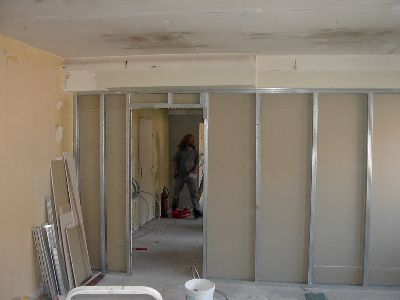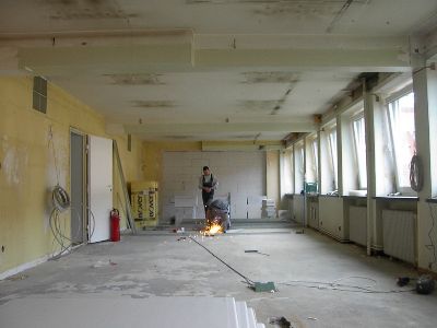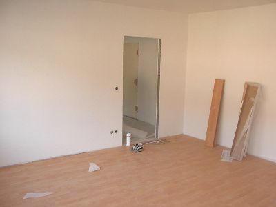 Bei den folgenden 4 Bildern haben wir ein Großraumbüro zu einer 2 Zimmer Wohnung mit Wohnküche und Duschbad umgebaut.