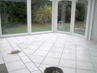 Hier jetzt noch ein paar Photos von Wintergärten, bei den wir die Bodenplatte, den Estrich und die Fliesenarbeiten für die Firma Thaden erstellten bzw. ausführten.