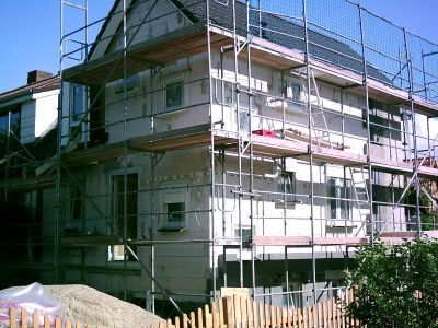 Hier haben wir ein Haus mit einem Wärme-Damm-Verbund-System (WDVS) der Firma STO versehen und anschließend mit Klinkerriemchen verklinkert. Der Auftrag wurde von der Fa. SG Bau vergeben.